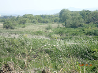 利根川はこのすぐ下流で烏川と合流し、八斗島へかけて広い川原が広がり、左写真のように、草と木が生い茂っています。